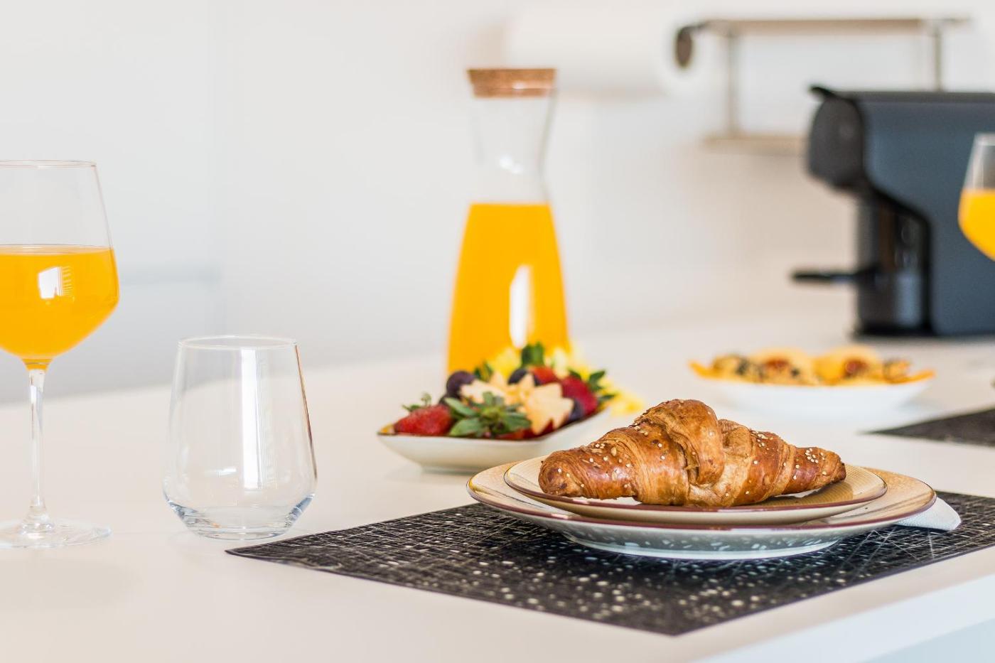 Este apartamento com ar condicionado tem 1 quarto, uma sala de estar, uma kitchenette totalmente equipada com frigorífico e máquina de café, e 1 casa de banho com chuveiro e um secador de cabelo. Toalhas e roupa de cama são providenciadas neste apartamento.