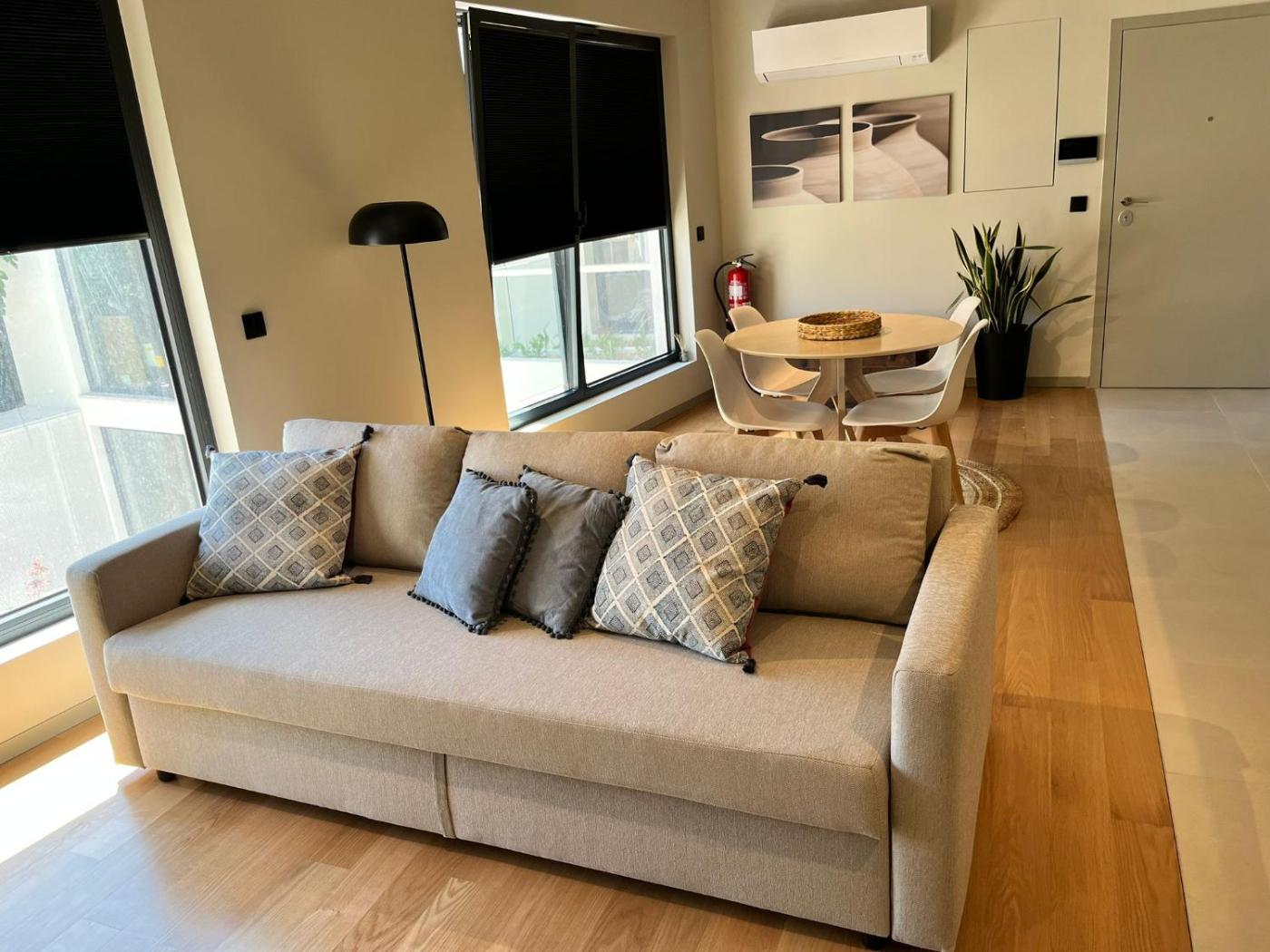 Este apartamento com ar condicionado tem 1 quarto, uma sala de estar, uma kitchenette totalmente equipada com frigorífico e máquina de café, e 2 casas de banho com chuveiro e produtos de higiene pessoal gratuitos. Toalhas e roupa de cama são providenciadas neste apartamento.