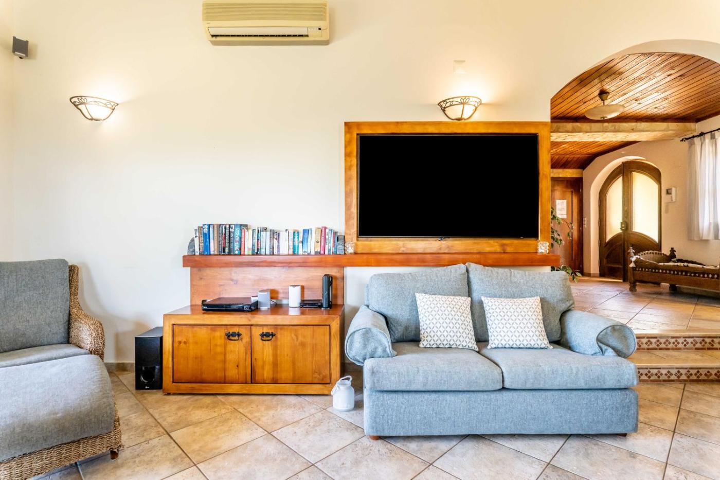 Villa. Guests will have a special experience as this villa offers a private pool and a fireplace. Guests will find a stovetop, a refrigerator, a dishwasher and kitchenware in the well-fitted kitchen. The villa also provides guests with a barbecue. The spacious air-conditioned villa provides a flat-screen TV with cable channels, a washing machine, a private entrance, a tea and coffee maker as well as sea views. The unit offers 10 beds.