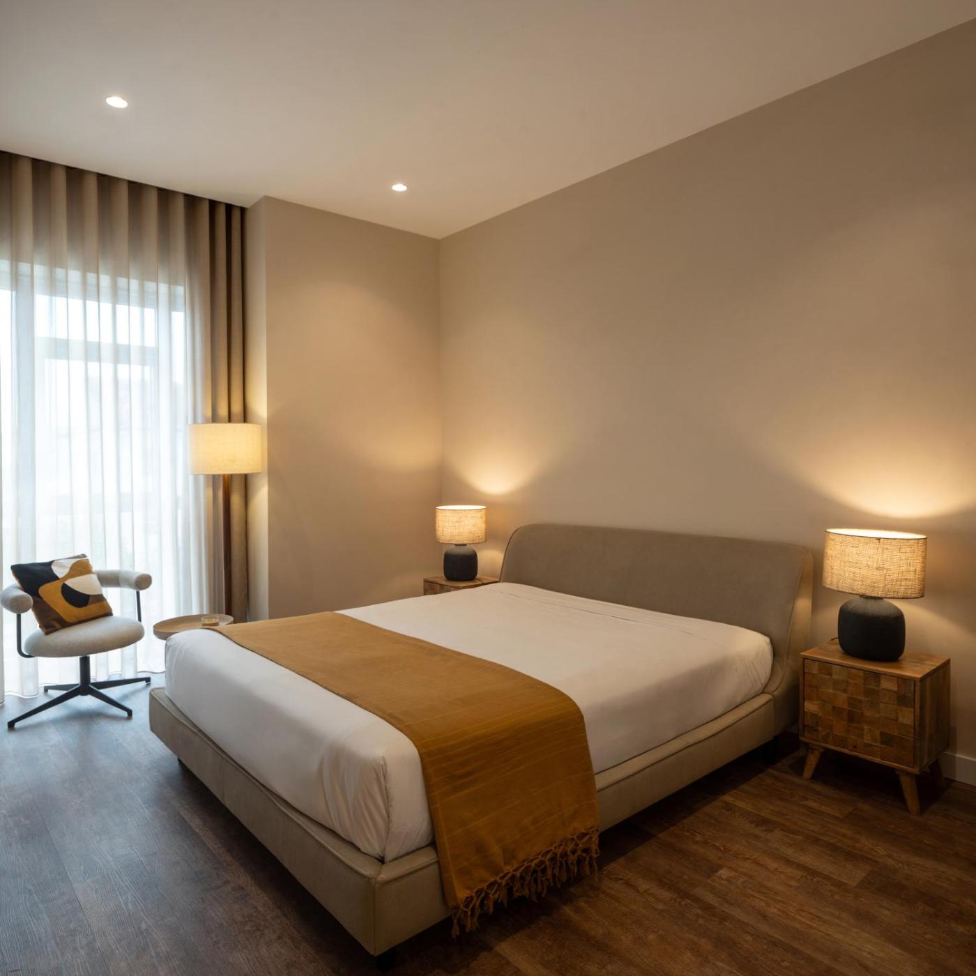 Apartamento Superior. The air-conditioned apartment has 1 bedroom and 1 bathroom with a shower and a hairdryer. In the well-fitted kitchen, guests will find a stovetop, a refrigerator, kitchenware and a microwave. The apartment offers soundproof walls, a minibar, a tea and coffee maker, a seating area and a flat-screen TV with satellite channels. The unit has 1 bed. ;