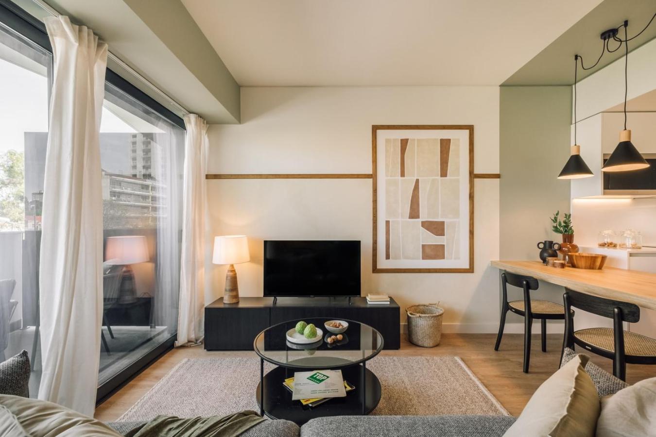Este apartamento apresenta um pátio, 1 quarto, uma sala de estar e uma cozinha equipada com frigorífico e máquina de lavar louça. Uma televisão está disponível.