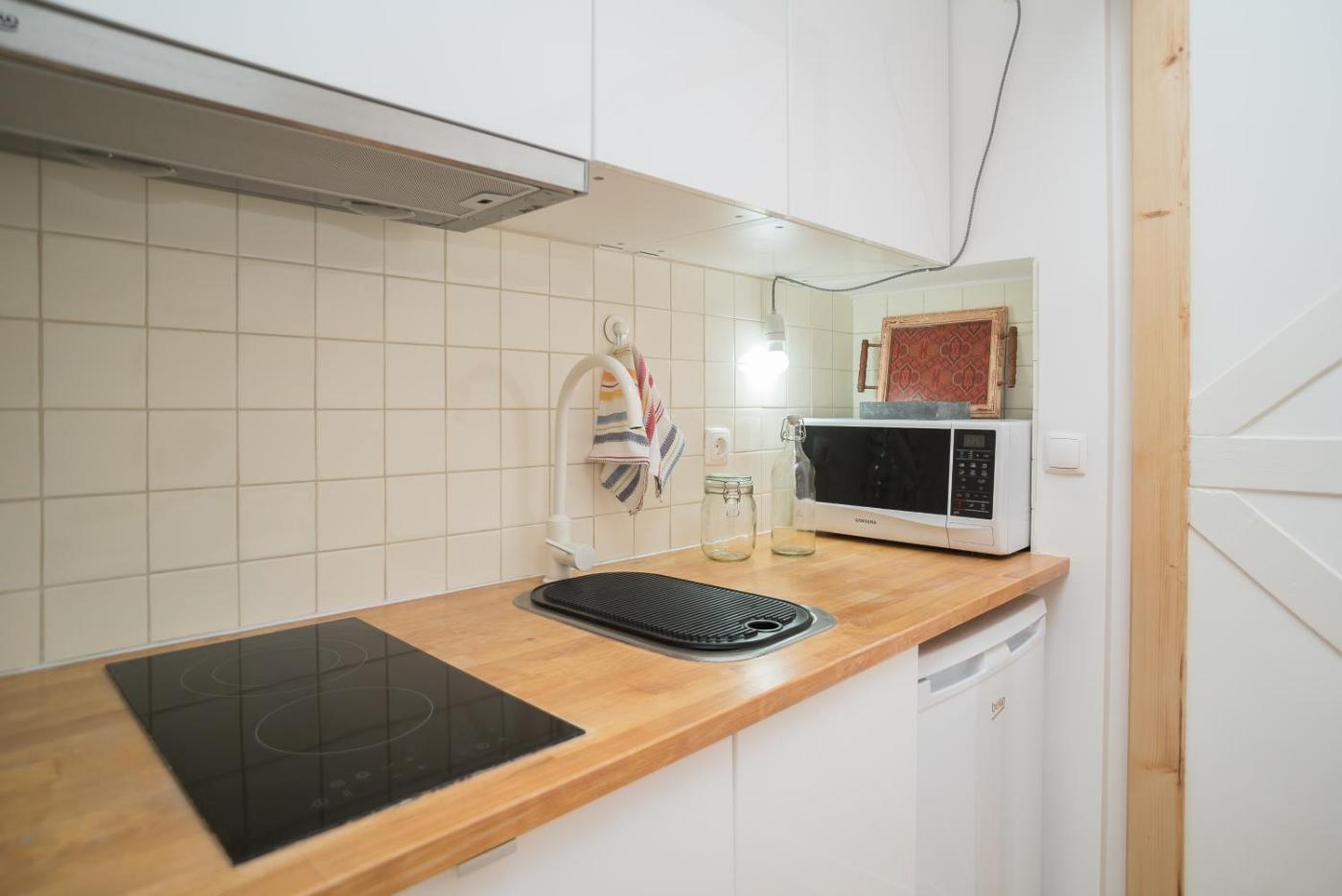 Este apartamento com ar condicionado tem 1 quarto, uma sala de estar, uma kitchenette totalmente equipada com frigorÃfico e máquina de café, e 1 casa de banho com chuveiro e produtos de higiene pessoal gratuitos. Toalhas e roupa de cama são providenciadas neste apartamento.