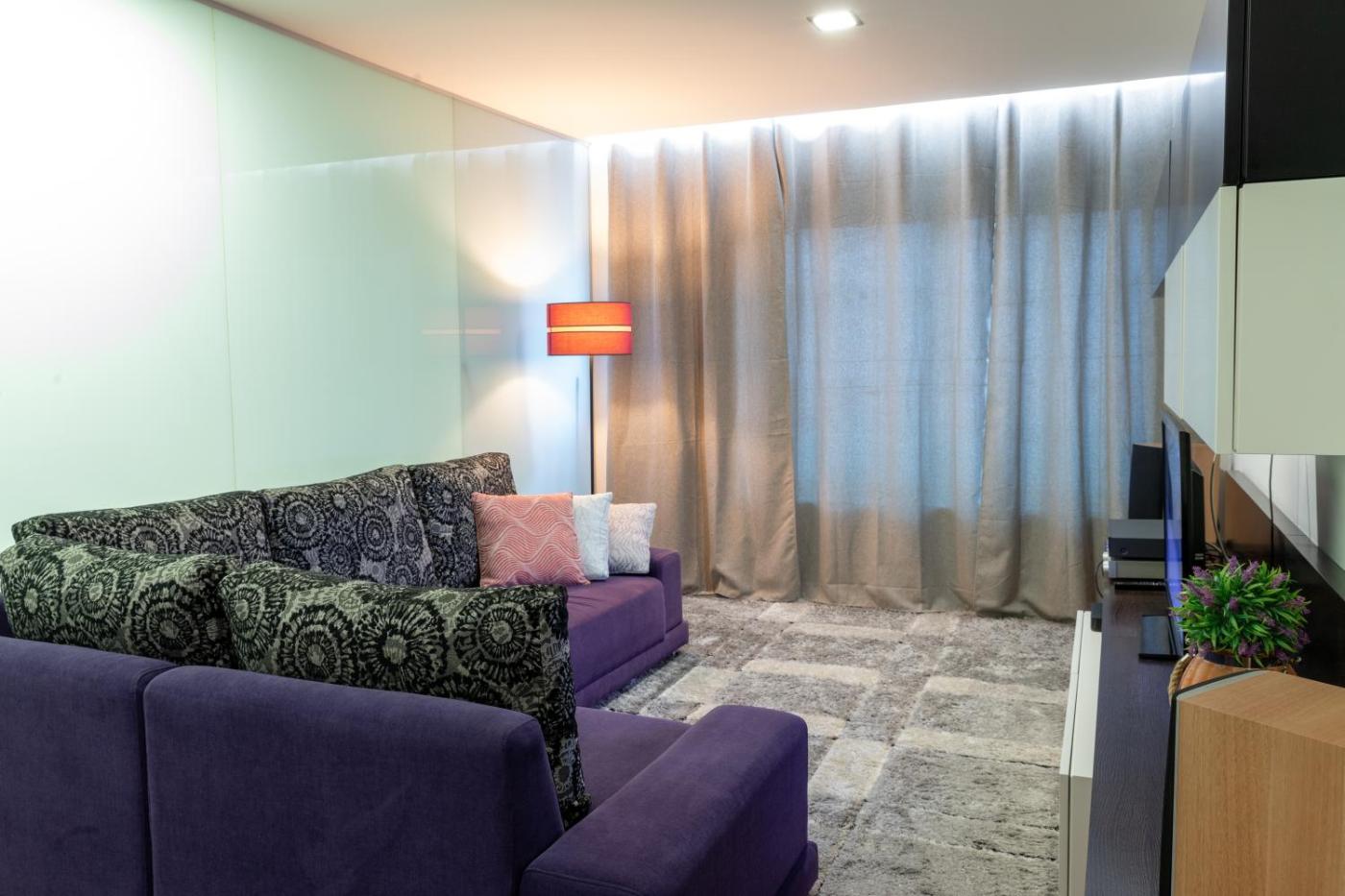Apartamento com 1 Quarto. This spacious apartment comprises 1 living room, 1 separate bedroom and 1 bathroom with a bath and a shower. The fully equipped kitchen features a stovetop, a refrigerator, a dishwasher and kitchenware. The apartment provides a washing machine, soundproof walls, a coffee machine, a flat-screen TV with cable channels, as well as lake views. The unit offers 2 beds.