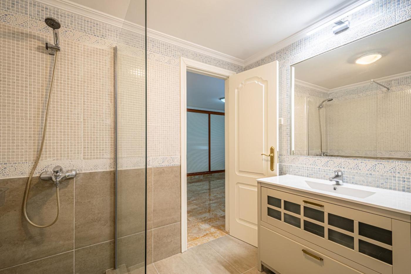 Este apartamento com ar condicionado tem 2 quartos, uma sala de estar, uma cozinha totalmente equipada com frigorífico e máquina de café, e 2 casas de banho com chuveiro e um secador de cabelo.