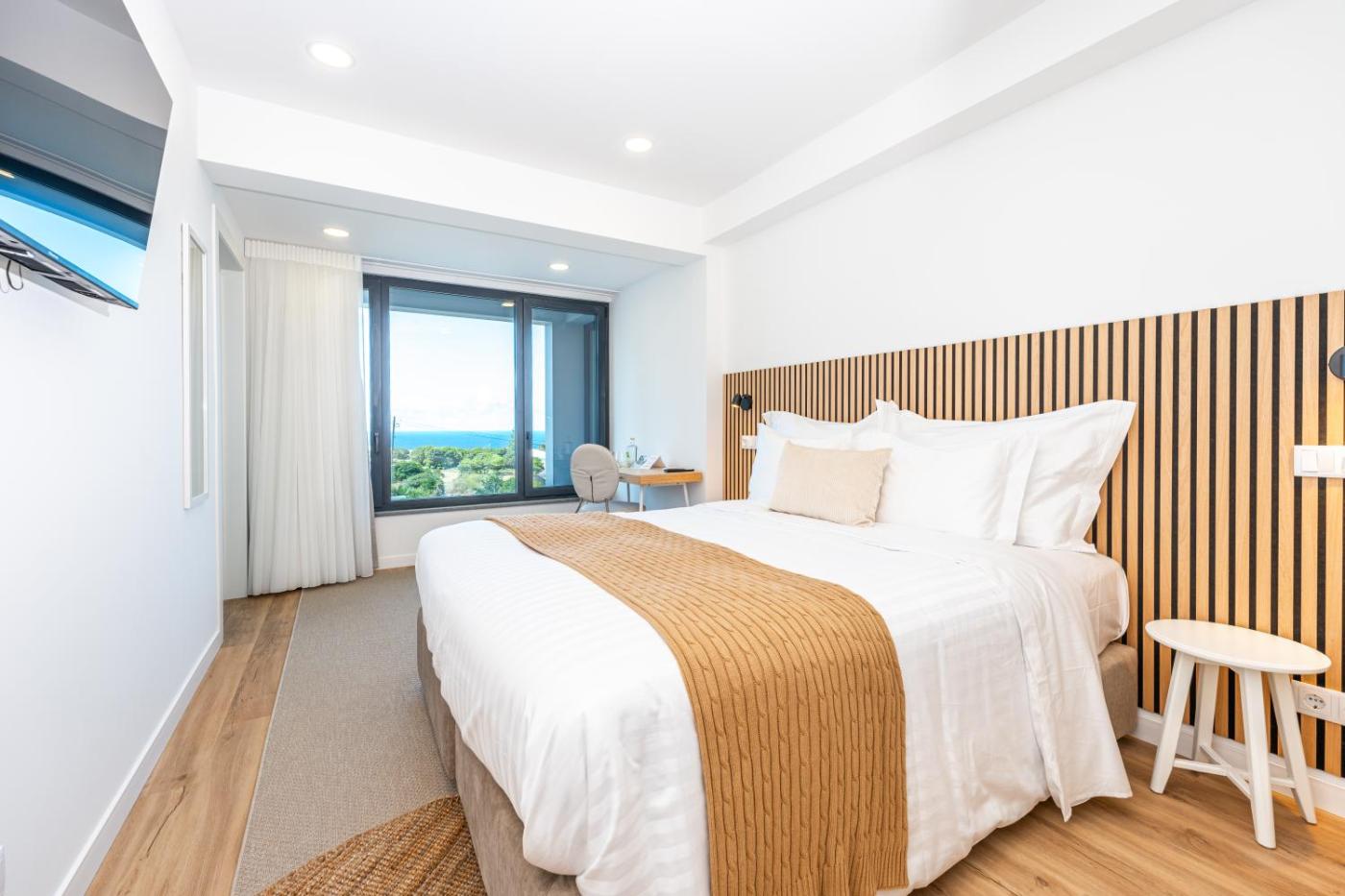 Quarto Duplo ou Twin Deluxe com Vista Mar. The pool with a view and hot tub are the standout features of this twindouble room. Guests will find a stovetop, a refrigerator, a dishwasher and kitchenware in the well-equipped kitchen. The twindouble room also offers a barbecue. This air-conditioned twindouble room includes a flat-screen TV with satellite channels, a private bathroom as well as a balcony with sea views. ;