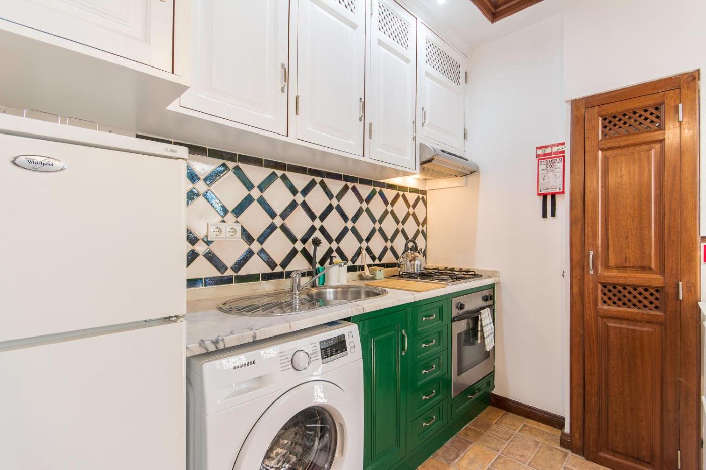 Este apartamento tem 1 quarto, uma sala de estar, uma cozinha totalmente equipada com frigorífico e máquina de café, e 1 casa de banho com bidé e chuveiro. Toalhas e roupa de cama são providenciadas neste apartamento.